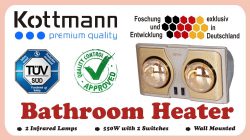 Đèn sưởi nhà tắm Kottmann 2 bóng treo tường – K2BH