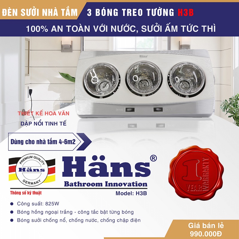 Đèn Sưởi Nhà Tắm Hans 3 Bóng H3B